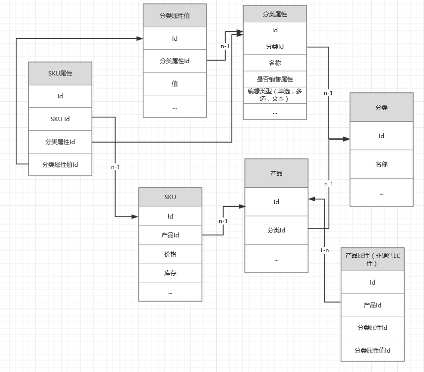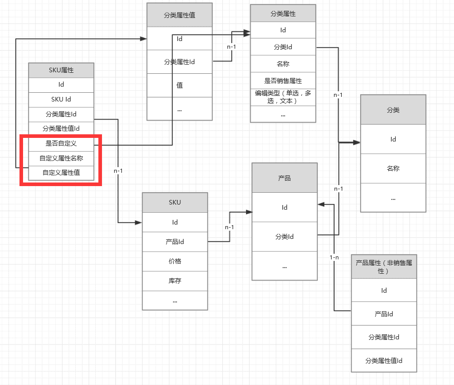 当然,实际比这更加复杂(比如产品的图片,单个SKU的图片,多个SKU共同的图片,非销售属性可以自定义添加分类不具有的。。。)