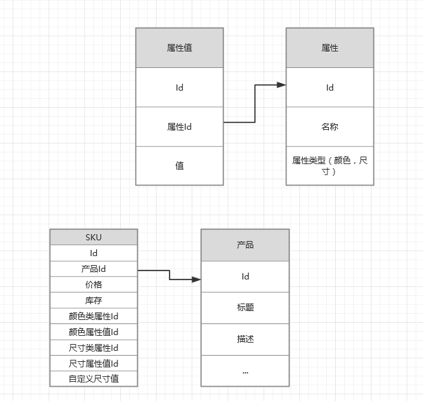 这样的优势就是可以随意控制SKU的数量,如果按照上面两个平台的规则,这里应该有4x4x1=16个SKU。这样自由度更高会不会使结构更加复杂呢?当然是NO,用上面的数据模型就可以搞定