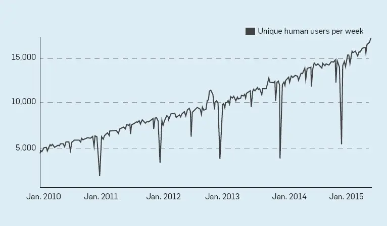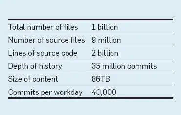 Google 的代码库为 Google 在全球各个国家和地区超过 2 万 5 千名的官方开发人员提供代码共享服务。在具有代表性的工作日中,这些开发者有 16,000 份代码修改提交给代码库。(来源)