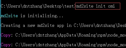 $ md2site init your_project_name比如我创建一个omi的文档: