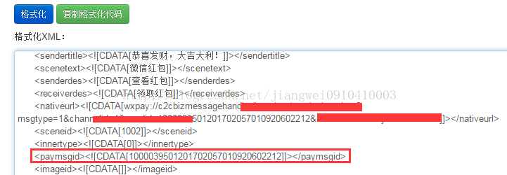 我们可以看到当发送一个红包之后的消息xml格式如下:
