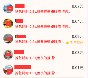 但是这三种方式其实目的只有一个:在收到红包之后能够立即提醒用户,核心点就一个字"快",那么防止这些插件的出发点也就是如何能够得到抢红包的时间,通过这个时间来判断一个人到底有没有用插件。因为我们抢过红包的都知道,正常情况下抢一个红包需要经历:接受红包消息+手动点击红包+红包打开动画,这三个场景。安装平均网速和人的反应速度,抢一个红包消耗的时间大约在4s-5s左右。当然可能会更长,如果更长的时间就不在我们这次讨论范围内了,而这个时间也是我们自己估摸出来的,不是非常准确的。所以我们现在的思路是,如何能够获取一个红包被抢了之后,每个人抢包消耗的时间。