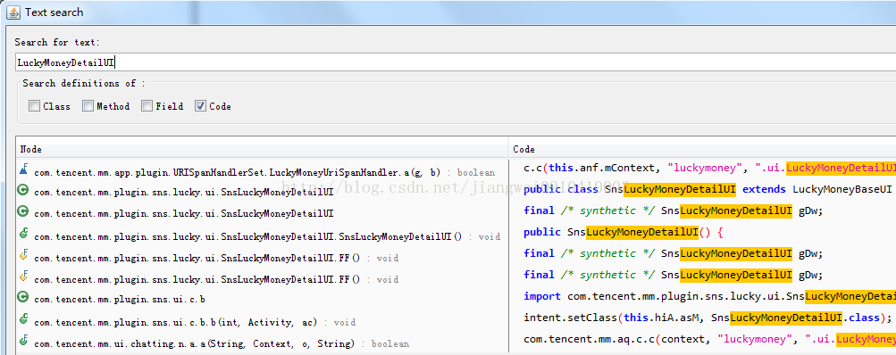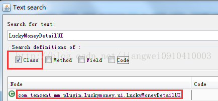 所以我们可以直接解压这个jar,得到对应的dex文件,然后用jadx打开即可,继续搜索类:
