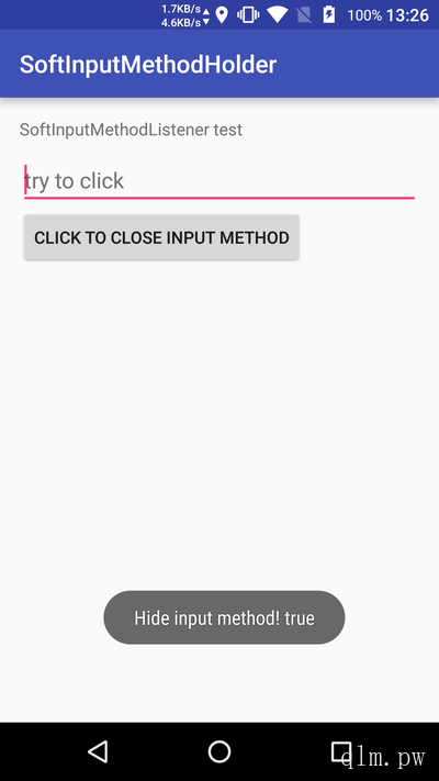 SoftInputMethodHolder.init(context);该方法会 hook InputMethodManager,所以建议越早调用越好,比如在Application中的void attachBaseContext(Context base)方法中。 - 需要监听的地方注册监听器: