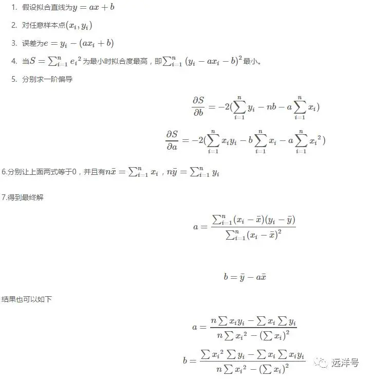 线性回归过程主要解决的就是如何通过样本来获取最佳的拟合线。最常用的方法便是最小二乘法,它是一种数学优化技术,它通过最小化误差的平方和寻找数据的最佳函数匹配。