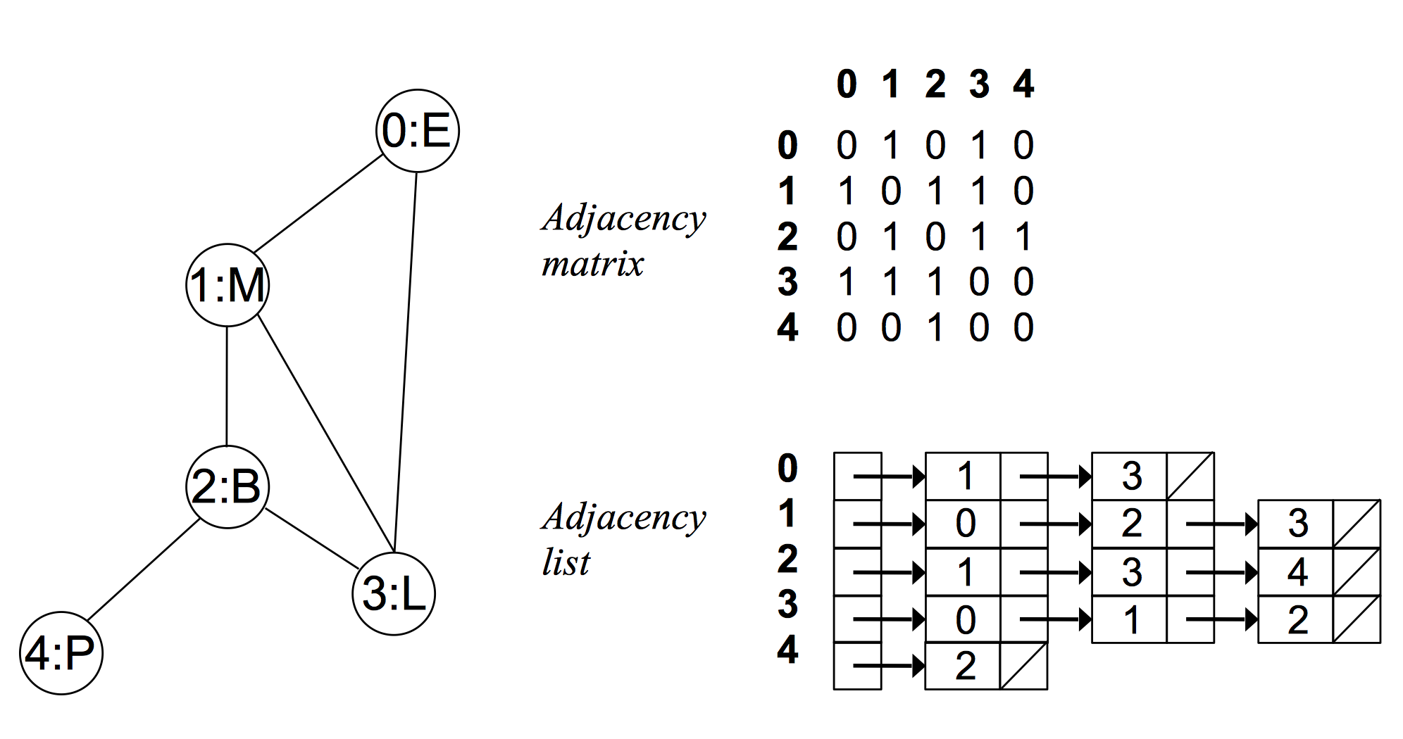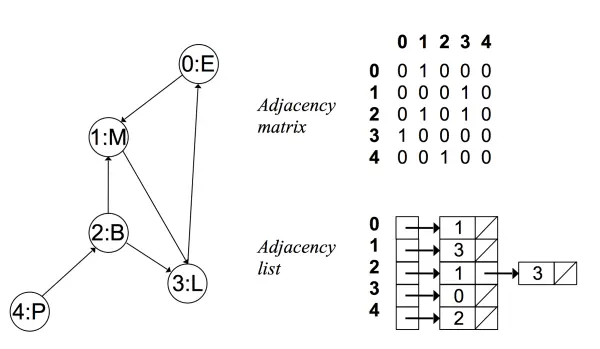 - 对于每个点,存储着一个链表,用来指向所有与该点直接相连的点
