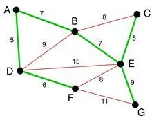 - 输入:一个加权连通图,其中顶点集合为 V,边集合为 E