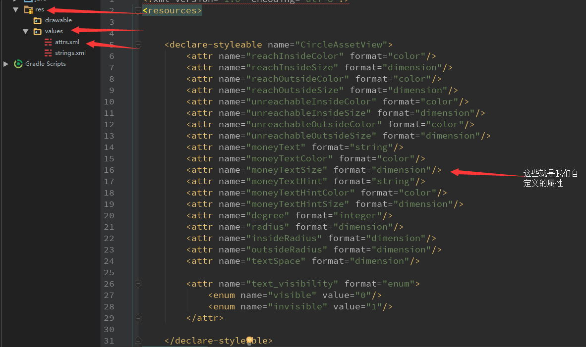 第一步 我们在res目录的values目录下新建资源文件attrs