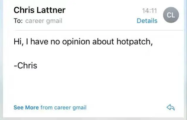 有人说有没可能是苹果在为 Swift 下一步很大的棋。为了确认此事某好事网友咨询了 Swift 之父CL: