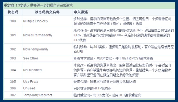 临时重定向用302,307