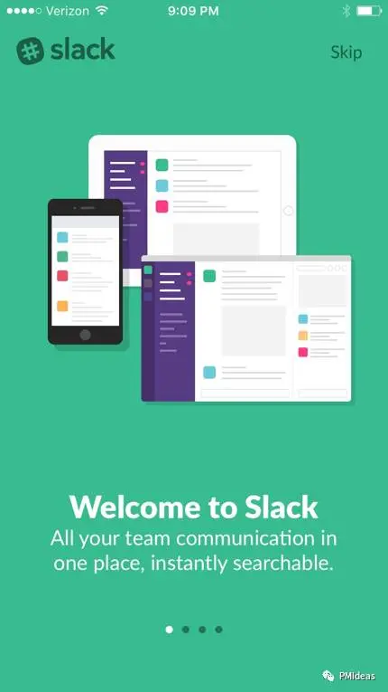实际上,引导流程可以使用很多益于用户的方式来进行设计。例如,Slack,使用面向用户的第一屏向其显示一些必要的内容,简单地介绍自己,专注于告诉用户自己的价值所在,而不是使用屏幕标注展示太过具体的功能特性。