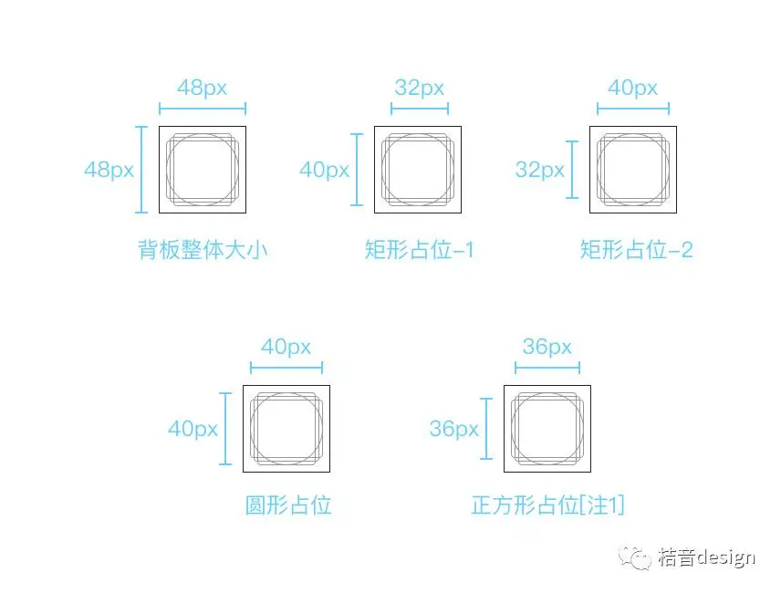注1:为什么矩形占位与圆形的占位不一样,主因是为了视觉修正,相同尺寸下,矩形看起来会比圆形大一些。