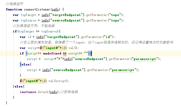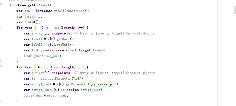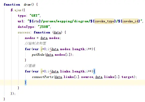 经过后台代码的处理后,我们得到了json数据,接下来就是解析json数据并调用jsplumb的API