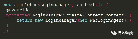 这种方法其实是 3.2 中讨论的单例的继承的情况,为了提高可扩展性,父类的构造函数不再是私有的,导致单例的“唯一性”遭到了破坏。工程的任意处,我调用如下代码,即可以再得到一个 LoginManager: