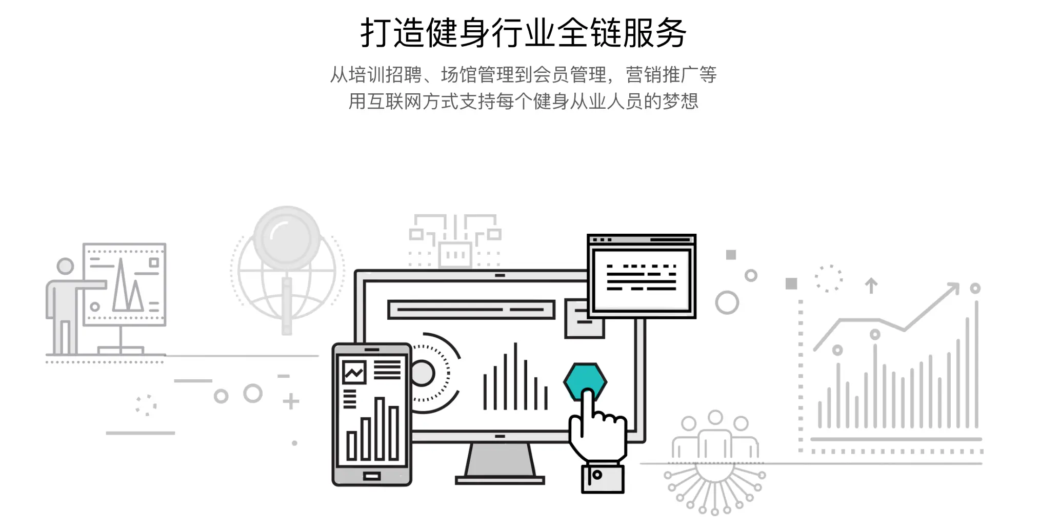 我们是一家为健身行业提供完整解决方案的领先系统服务商,覆盖健身行业的所有从业者,支持所有从业者的健身梦想。