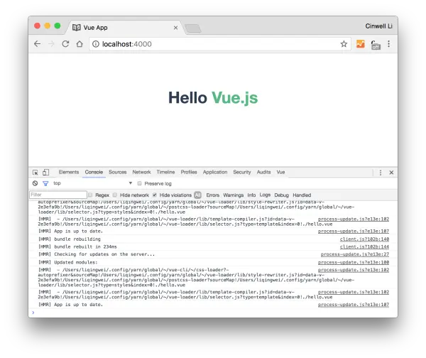 在终端里输入 vue build app.vue 并打开 http://localhost:4000 就可以预览到结果了。