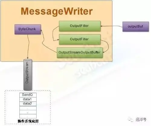 用于向操作系统底层写入由web容器处理后的报文并提供缓冲机制。将报文outputBuf通过缓冲区写入到操作系统。