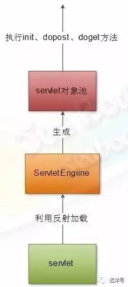 servlet引擎利用反射把web应用中的servlet及jsp生成对象并放入servlet对象池中,并根据实际调用相应的方法。web应用将业务逻辑处理都放在dopost或doget方法中,web容器处理请求时就会按照这里定义好的处理逻辑进行处理,处理完响应客户端。