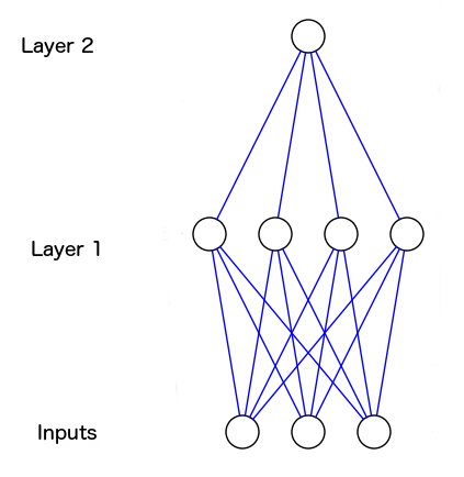 由图可见,Layer 1的输出给了Layer 2,如此神经网络就可以学习Layer 1的输出和训练集的输出之间的关系。在学习过程中,这些关系会随着两层的权重调整而加强。