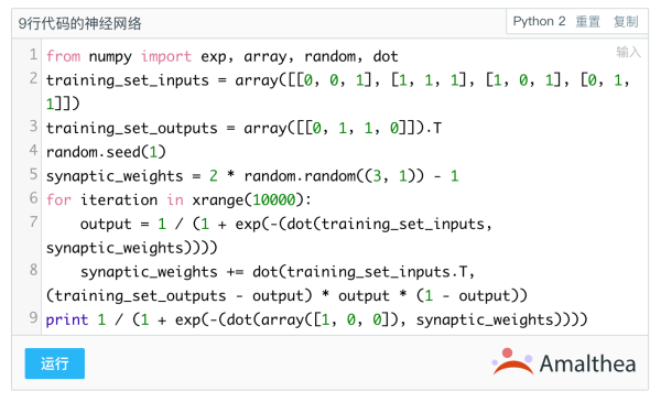 代码可调版本:9行Python代码搭建神经网络 - 集智专栏