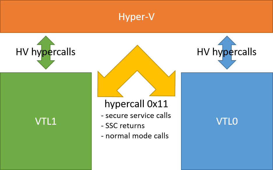 让我们首先描述“VTL1到Hyper-V”的超级调用(绿色)。然后我们将描述0x11的超级调用。