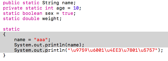 可以看到跟结果一样, 但是如果你在静态代码块中调用静态成员变量的话, 你就会看到编译结果有了一个变化.