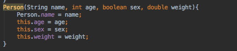 这个就是编译器为你自动写好的函数. 而一般的方法不具备这个功能, 但是这个构造函数不允许按照上文代码一样去重写, 因为他会无限的调用其本身, 产生比死循环更严重的递归.Person(){ } - 构造器可以拥有一个或者多个参数 ---- 这点我要着重讲一下.