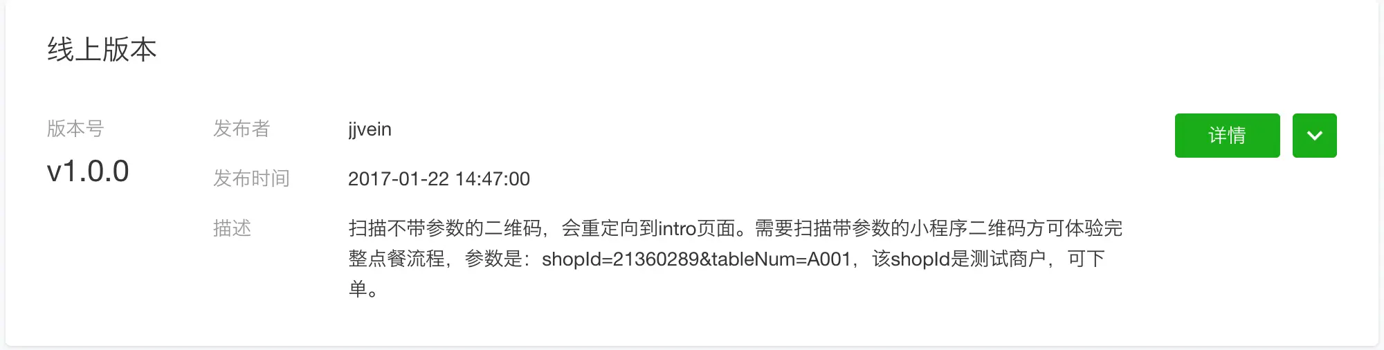 - 线上版:点击“提交发布”可将审核通过版本上线,用户就可以体验新版小程序。