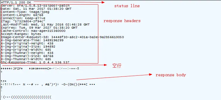 注意: 请求行/状态行和报文头部是字符,而请求体和响应体可以是字符,也可以是二进制流