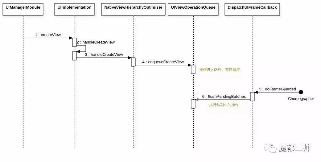上面将1~7都捕获完了,那么我们需要知道最后一个8:UI操作的异常要怎么捕获。虽然UI操作,其实是调用的UIManagerModule这个Java模块进行的操作,但是实际上它不是马上被同步执行的,而是仅仅只有一个入队列的操作。所有的UI操作都通过Choreographer来驱动执行,那这个时候虽然是在主线程运行,但是不在上面任何一个MessageQueue里面了,于是上面的方式捕获不到。