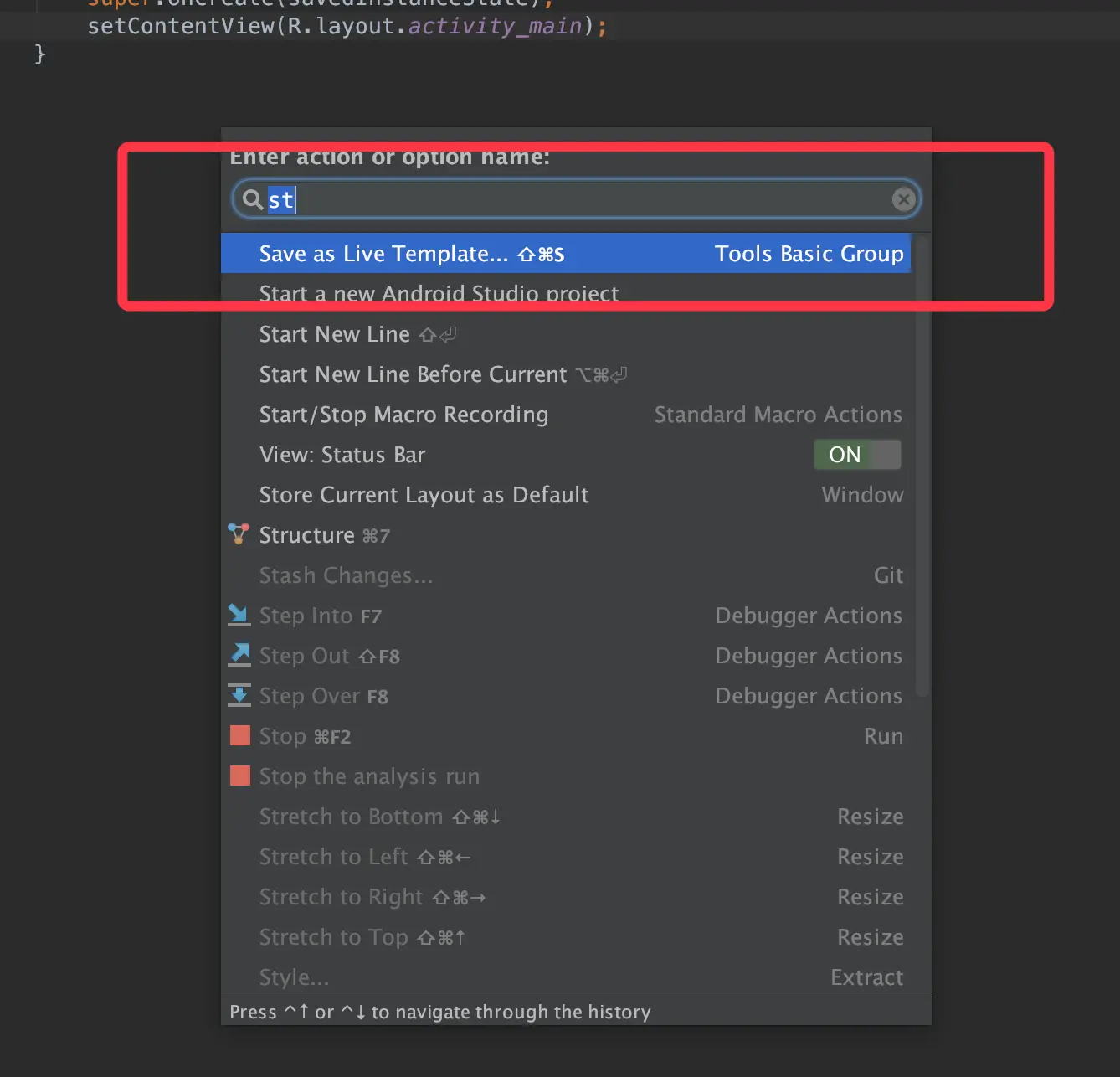 这个功能是可以搜索所有的功能的一个功能,可能有点绕,快捷键其实也只是Android studio中一个Action的快捷方式,如果我们知道这个Action,其实是可以通过这个Find Action来找到它,所以理想状态下,如果你熟悉所有的Action,理论上只要设置一个快捷键就行,就是这个Find Action。不过这样其实也不是最快最方便的,还是看情况使用,我现在的使用习惯是频次较高的一些功能都使用原生的或者自定义的快捷键,一些频次较低的通过Find Action。
