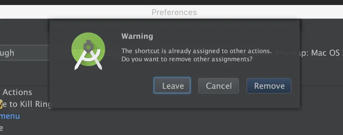 Android studio提供了好几套快捷键模板,首先我们先选择一个最接近于使用习惯的模板来操作:
