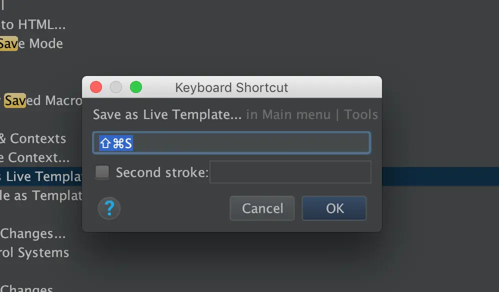 比如想要修改Save as Live Template,可以通过目录查找到或者右上角的搜索查找到。