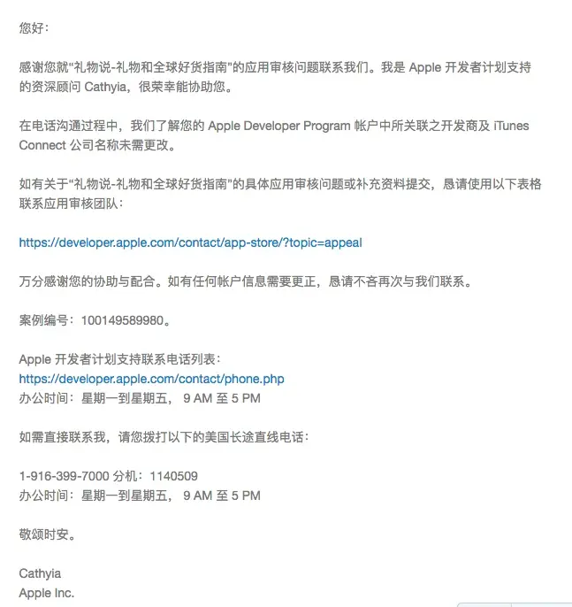 把截图和案例编号发给对方,他们说明我确实已经联系过开发者客服了,且对方判断出我不需要修改任何东西。