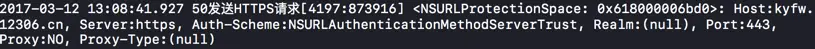 可以看到有主机名, 服务器请求方法, 认证方案, 端口443,代理,代理类型等内容. 我们可以看到认证方案为NSURLAuthenticationMethodServerTrust