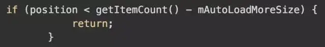 理解起来大概是这样的,mAutoLoadMoreSize是标识开启自动加载更多的一个数量阀值。这个返回很巧妙。