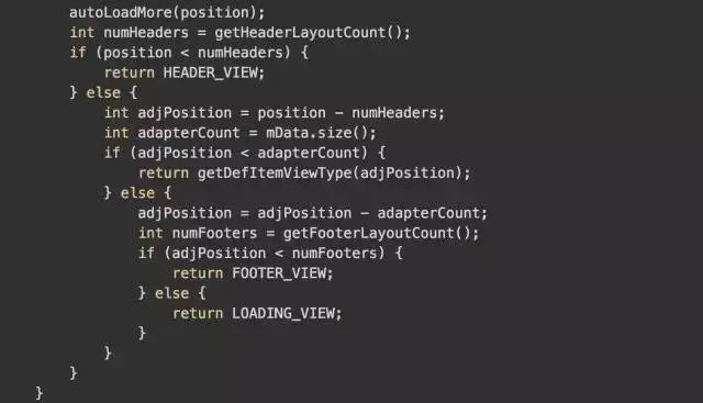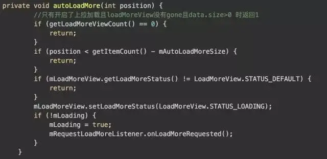 首先我们今天的切入点是:autoLoadMore(int position) 见名知意,是与自动加载更多相关的。我们先看下该函数的代码实现