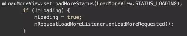 在设置监听器的时候,代码也帮我们做了一个字段的赋值操作。默认开启上拉加载,mLoading是表示当前是否处于上拉加载中。