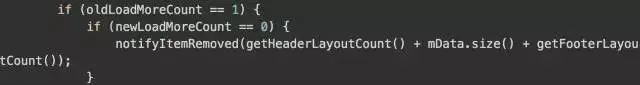 我们为什么要做插入这段代码呢,他的作用其实是这样的:加入当前处于显示加载更多view的状态,此时你想关闭该开关,那我们第一件事要做什么呢,当然是移除加载更多view 了,这段代码的作用就是这个。