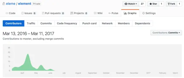 就在今天,即 3 月 13 日,Element 迎来了它一周岁的生日,对,它一周年了。一年前的今天,GitHub 中的一个 eleme / element 仓库悄然诞生。