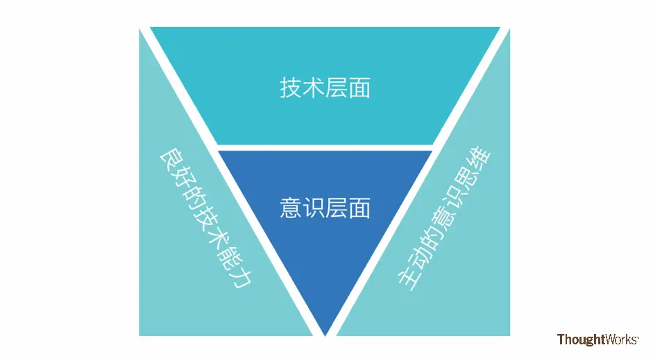 由于意识层面上的难易程度和工作量都比技术层面上相对较小,所以前者实施起来相对容易一些,而后者则相对较难,所以如果通过了各种手段强行实施TDD,而没有主动去摆正做TDD的意识,甚至没有足够的技术能力,那么这样的TDD就是一个倒三角,非常容易倒塌。