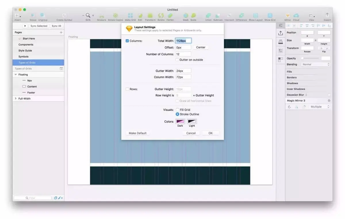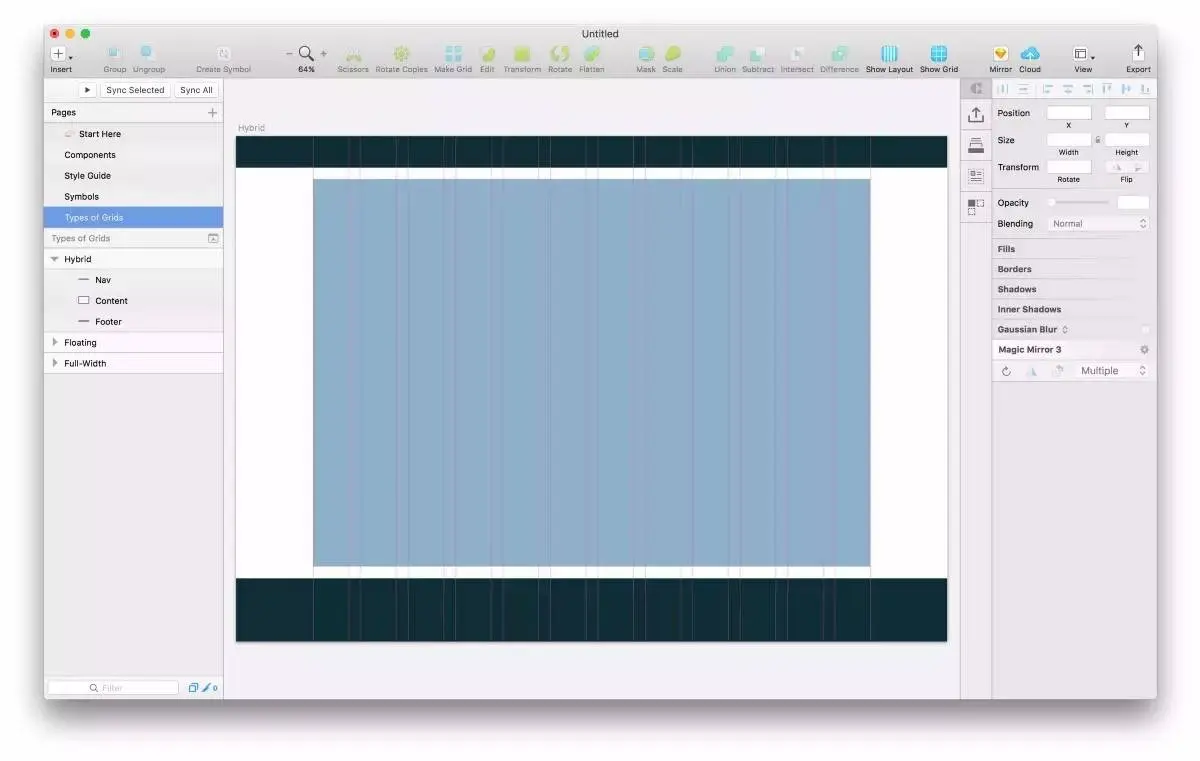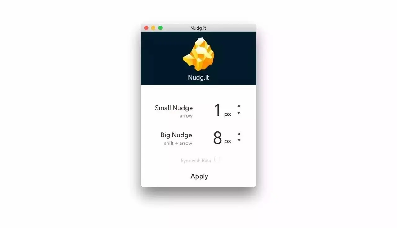 最后一个提示 。默认Shift+>在Sketch里面移动是10像素。这一点非常恼人的当你在8像素网格里面操作时。但幸运的是,AnthonyCollurafici 做了一个叫Nudg.it的软件来帮你解决这个问题。
