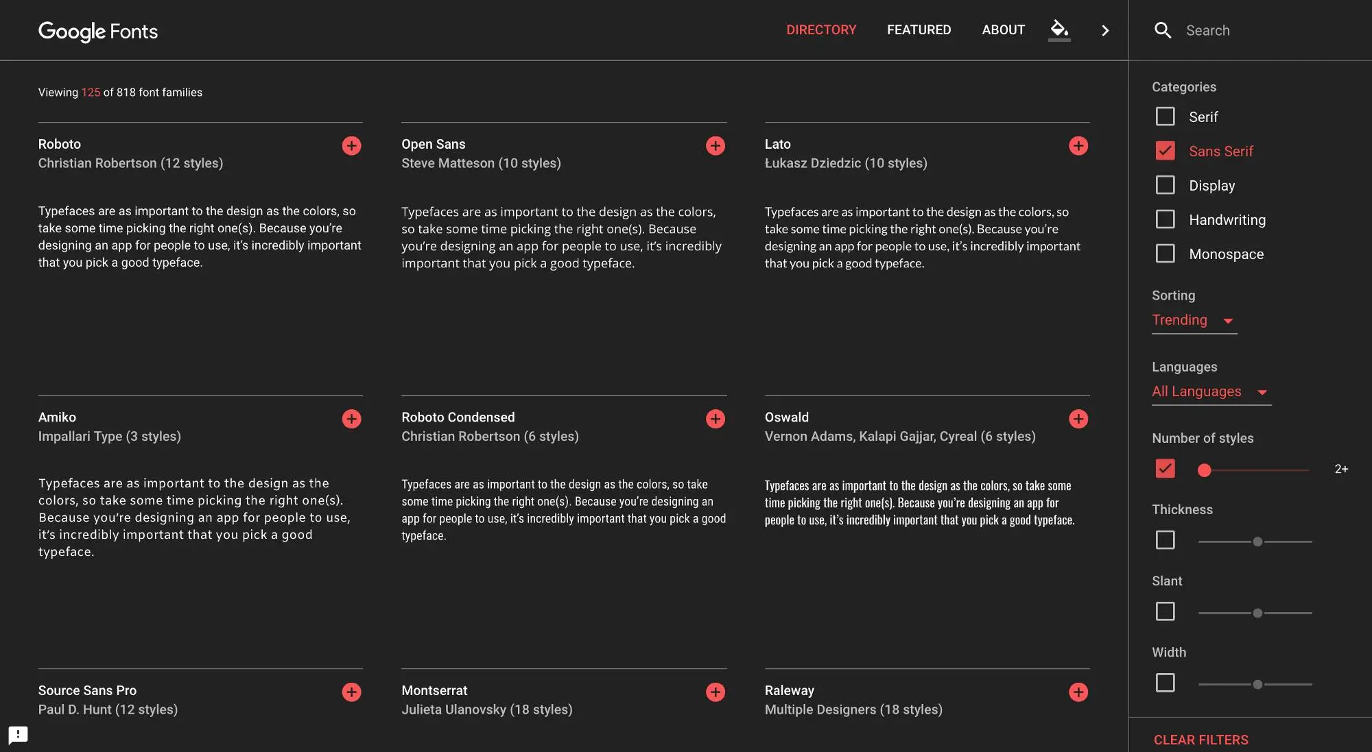 谷歌字体(Google Fonts)在去年更新了页面,它真是太好用了。我总是用黑、白背景来确保字体在任何时候都可以使用,易于阅读和辨识。