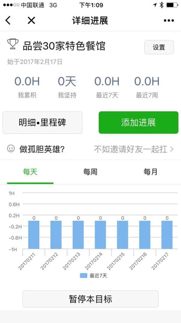随着进展的累积,可以按天按周按月统计投入的时间,还能看到图文明细。