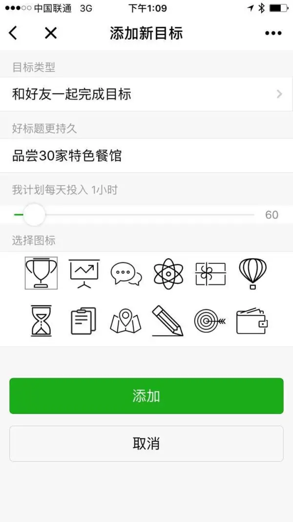 此时,点击右上角的「…」,就能显示分享入口,分享给微信好友,加入目标。