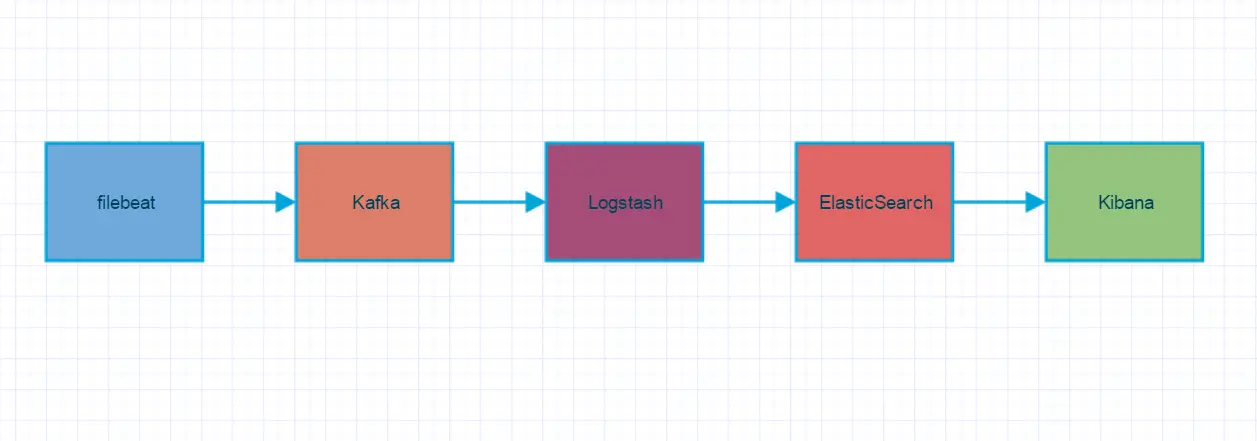 最后,Elasticsearch 存储并索引 Logstash 转发过来的数据,并通过 Kibana 查询和可视化展示,达到实时分析日志的目的。