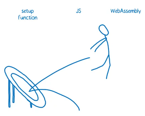 目前,在 JS 中调用 WebAssembly 的速度比本应达到的速度要慢。这是因为中间需要做一次“蹦床运动”。JIT 没有办法直接处理 WebAssembly,所以 JIT 要先把 WebAssembly 函数发送到懂它的地方。这一过程是引擎中比较慢的地方。