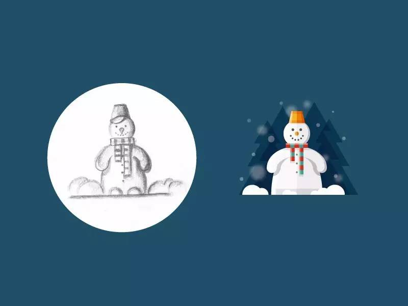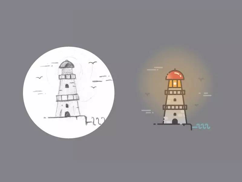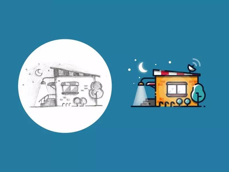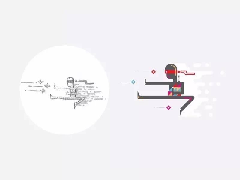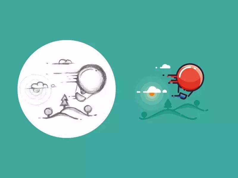 但是再看他后来的作品,设计风格就比较统一。插画背景以纯色为主,先通过手绘草图确定插画图案的大致造型,然后用简单的点、粗线条、波纹造型的背景组合,最后添加一定动效,整个作品非常形象、有趣。