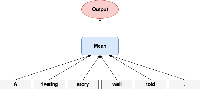 取一些词表征(图下部的灰色框),然后通过加(sum)或平均(average)得到一个共同的表征(蓝色框),这个共同表征(common representation)包含了每个词的一些信息。在这篇文章中,该共同表征被用于预测一个句子是积极的还是消极的(红色框)。