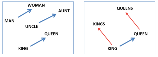 取一个词,将其转换成一个高维嵌入(比如 300 维),然后使用 PCA 或 T-SNE(流行的降维工具,在这个案例中是降为 2 维),你就可以找到词之间的有趣关系。比如,在上图中你可以看到 uncle 与 aunt 之间的距离和 man 与 woman 之间的距离差不多相等(来自 Mikolov et al., 2013)